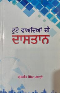 ਇਸ ਪੁਸਤਕ ਦਾ ਨਾਮ ‘ਟੁੱਟੇ ਵਾਅਦਿਆਂ ਦੀ ਦਾਸਤਾਨ’ ਪੁਸਤਕ ਦੇ ਵਿਸ਼ੇ ਤੇ ਲੇਖਕ ਦੀ ਸਮਾਜ ਪ੍ਰਤੀ ਸੰਜੀਦਗੀ ਦੀ ਗਵਾਹੀ ਭਰਦਾ ਹੈ, ਭਾਵ ਸਰਕਾਰਾਂ ਦੇ ਕੀਤੇ ਵਾਅਦਿਆਂ ਦੇ ਵਫ਼ਾ ਨਾ ਹੋਣ ਦੀ ਪੋਲ ਖੋਲ੍ਹਦੀ ਹੈ। ਇਸ ਸਿਰਲੇਖ ਤੋਂ ਗੁਰਮੀਤ ਸਿੰਘ ਪਲਾਹੀ ਦੀ ਵਿਚਾਰਧਾਰਾ ਦਾ ਵੀ ਪ੍ਰਗਟਾਵਾ ਹੁੰਦਾ ਹੈ। ਇਹ ਲੇਖ ਮੁੱਢਲੇ ਤੌਰ ‘ਤੇ ਲੋਕਾਈ ਦੇ ਹਿੱਤਾਂ ਦੀ ਪਹਿਰੇਦਾਰੀ ਕਰਦੇ ਹਨ, ਖਾਸ ਤੌਰ ‘ਤੇ ਮਨੁੱਖੀ ਹੱਕਾਂ ਦੀ ਰੱਖਵਾਲੀ ਕਰਨ ਵਾਲੇ ਹਨ। ਪੰਜਾਬ ਵਿੱਚ ਬਹੁਤ ਸਾਰੇ ਚਿੰਤਕ/ਵਿਦਵਾਨ/ਬੁੱਧੀਜੀਵੀ/ਕਾਬਲ ਕਾਲਮ ਨਵੀਸ ਹਨ, ਜਿਹੜੇ ਸਮਾਜਿਕ ਵਿਸੰਗਤੀਆਂ ਬਾਰੇ ਲਿਖਦੇ ਰਹਿੰਦੇ ਹਨ ਪ੍ਰੰਤੂ ਇਨ੍ਹਾਂ ਵਿੱਚੋਂ ਆਟੇ ਵਿੱਚ ਲੂਣ ਦੀ ਤਰ੍ਹਾਂ ਬਹੁਤ ਥੋੜ੍ਹੇ ਹਨ, ਜਿਹੜੇ ਬੇਬਾਕੀ ਨਾਲ ਮਨੁੱਖੀ ਹੱਕਾਂ ਤੇ ਹੋ ਰਹੇ ਹਮਲਿਆਂ ਬਾਰੇ ਲਿਖਣ ਦਾ ਹੌਸਲਾ ਕਰਦੇ ਹਨ। ਗੁਰਮੀਤ ਸਿੰਘ ਪਲਾਹੀ ਉਨ੍ਹਾਂ ਵਿੱਚੋਂ ਇੱਕ ਅਜਿਹਾ ਚਿੰਤਕ ਹੈ, ਜਿਸਦੇ ਲੇਖ ਹਰ ਮਸਲੇ ‘ਤੇ ਲਗਪਗ ਹਰ ਰੋਜ਼ ਕਿਸੇ ਨਾ ਕਿਸੇ ਅਖ਼ਬਾਰ ਦਾ ਸ਼ਿੰਗਾਰ ਬਣਦੇ ਹਨ। ਉਹ ਬੜੀ ਦਲੇਰੀ ਨਾਲ ਸਰਕਾਰਾਂ ਦੀਆਂ ਕੁਰੀਤੀਆਂ, ਜੋਰ ਜ਼ੁਬਰਦਸਤੀਆਂ, ਅਣਗਹਿਲੀਆਂ ਤੇ ਲਾਪ੍ਰਵਾਹੀਆਂ ਨੂੰ ਲੋਕਾਂ ਦੀ ਕਚਹਿਰੀ ਵਿੱਚ ਰੱਖ ਦਿੰਦੇ ਹਨ। ਇਸ ਪੁਸਤਕ ਵਿੱਚ ਉਸਦੇ ਲਗਪਗ 20 ਲੇਖ ਕਿਸਾਨਾ/ਮਜ਼ਦੂਰਾਂ/ਮੁਲਾਜ਼ਮਾ ਦੀਆਂ ਸਮੱਸਿਆਵਾਂ ਅਤੇ ਸਰਕਾਰਾਂ ਵੱਲੋਂ ਉਨ੍ਹਾਂ ਦੇ ਹਿਤਾਂ ਦੀ ਕੀਤੀ ਜਾ ਰਹੀ ਅਣਵੇਖੀ ਨਾਲ ਸੰਬੰਧਤ ਹਨ। ਉਹ ਇਕੱਲੇ ਪੰਜਾਬ ਦੇ ਕਿਸਾਨਾ/ਮਜ਼ਦੂਰਾਂ/ਮੁਲਾਜ਼ਮਾ ਬਾਰੇ ਹੀ ਚਿੰਤਤ ਨਹੀਂ ਸਗੋਂ ਸਮੁੱਚੇ ਸੰਸਾਰ ਵਿੱਚ ਕਿਸਾਨ/ਮਜ਼ਦੂਰਾਂ/ਮੁਲਾਜ਼ਮਾ ਨਾਲ ਸਰਕਾਰਾਂ ਵੱਲੋਂ ਕੀਤੀਆਂ ਜਾ ਰਹੀਆਂ ਜ਼ਿਆਦਤੀਆਂ ਦਾ ਪਰਦਾ ਫ਼ਾਸ਼ ਕਰਦੇ ਹੋਏ, ਉਨ੍ਹਾਂ ਨੂੰ ਆਪਣੇ ਹੱਕਾਂ ਦੀ ਹਿਫ਼ਾਜ਼ਤ ਲਈ ਇੱਕਮੁੱਠ ਹੋ ਕੇ ਲੜਾਈ ਲੜ੍ਹਨ ਦੀ ਪ੍ਰੇਰਨਾ ਦਿੰਦੇ ਹਨ। ਸਰਕਾਰਾਂ ਨਾਲ ਰਲਕੇ ਵੱਡੇ ਕਾਰੋਬਾਰੀ ਕਿਸਾਨਾ ਦੇ ਜ਼ਮਹੂਰੀ ਹੱਕਾਂ ‘ਤੇ ਮਾਰੂ ਕਾਰਵਾਈਆਂ ਕਰ ਰਹੇ ਹਨ ਪ੍ਰੰਤੂ ਗੁਰਮੀਤ ਸਿੰਘ ਪਲਾਹੀ ਉਨ੍ਹਾਂ ਦੀਆਂ ਅਜਿਹੀਆਂ ਹਰਕਤਾਂ ਦੇ ਆਪਣੇ ਲੇਖਾਂ ਰਾਹੀਂ ਪਾਜ ਉਘੇੜਦੇ ਹਨ। ਇਸ ਪੁਸਤਕ ਵਿੱਚ ਕੋਈ ਅਜਿਹਾ ਭਖਦਾ/ਚਲੰਤ ਮਸਲਾ ਨਹੀਂ ਜਿਸ ਬਾਰੇ ਉਸਦਾ ਲੇਖ ਪ੍ਰਕਾਸ਼ਤ ਨਾ ਹੋਇਆ ਹੋਵੇ। ਉਹ ਭਖਦੇ/ਚਲੰਤ ਮਸਲਿਆਂ ਬਾਰੇ ਲਿਖਣ ਵਾਲਾ ਬੁੱਧੀਜੀਵੀ ਹੈ। ਖਾਸ ਤੌਰ ’ਤੇ ਬੇਰੋਜ਼ਗਾਰੀ, ਭ੍ਰਿਸ਼ਿਟਾਚਾਰ, ਵਾਤਾਵਰਨ, ਅਮਨ ਕਾਨੂੰਨ, ਪ੍ਰਦੂਸ਼ਣ, ਸਿਧਾਂਤਹੀਣ ਸਿਆਸਤਦਾਨ ਅਤੇ ਆਰਥਿਕ/ਸਮਾਜਿਕ/ਸਭਿਅਚਾਰਕ/ਮਾਨਸਿਕ ਸ਼ੋਸ਼ਣ ਉਸ ਦੇ ਲੇਖਾਂ ਦਾ ਵਿਸ਼ਾ ਬਣਦੇ ਰਹਿੰਦੇ ਹਨ। ਉਪਰੋਕਤ ਵਿਸ਼ਿਆਂ ’ਤੇ ਵੀ ਉਸਦੇ ਲਗਪਗ 25 ਲੇਖ ਹਨ। ਇਹ ਅਜਿਹੇ ਵਿਸ਼ੇ ਹਨ, ਜਿਨ੍ਹਾਂ ਦਾ ਮਾਨਵਤਾ ਦੀ ਸਿਹਤ ’ਤੇ ਖ਼ਤਰਨਾਕ ਅਸਰ ਪੈਂਦਾ ਹੈ। ਇਨ੍ਹਾਂ ਮੁੱਦਿਆਂ ਕਰਕੇ ਬਹੁਤ ਸਾਰੇ ਲੋਕ ਖੁਦਕਸ਼ੀਆਂ ਕਰ ਜਾਂਦੇ ਹਨ। ਗੁਰਮੀਤ ਸਿੰਘ ਪਲਾਹੀ ਇੱਕ ਸੰਜੀਦਾ ਕਾਲਮ ਨਵੀਸ ਹੈ, ਇਸ ਕਰਕੇ ਜਦੋਂ ਕੋਈ ਇਨ੍ਹਾਂ ਵਿਸ਼ਿਆਂ ਨਾਲ ਸੰਬੰਧਤ ਕਾਰਵਾਈ/ਘਟਨਾ ਵਾਪਰਦੀ ਹੈ ਤਾਂ ਗੁਰਮੀਤ ਸਿੰਘ ਪਲਾਹੀ ਦਾ ਮਨ ਉਸਨੂੰ ਇਨ੍ਹਾਂ ਲੋਕਾਂ ਦੇ ਹਿੱਤਾਂ ਦੀ ਰਖਵਾਲੀ ਲਈ ਲੇਖ ਲਿਖਣ ਲਈ ਤਾਕੀਦ ਕਰਦਾ ਹੈ, ਫਿਰ ਉਹ ਸਖ਼ਤ ਸ਼ਬਦਾਵਲੀ ਵਿੱਚ ਲੋਕਾਈ ਦੀ ਪ੍ਰਤੀਨਿਧਤਾ ਕਰਨ ਵਾਲੇ ਲੇਖ ਲਿਖਦਾ ਹੈ। ਸਮੁੱਚੇ ਸੰਸਾਰ ਵਿੱਚ ਹਰ ਰੋਜ਼ ਨਵੀਂਆਂ ਘਟਨਾਵਾਂ ਅਤੇ ਚਲੰਤ ਮਸਲਿਆਂ ਤੇ ਕਿੰਤੂ ਪ੍ਰੰਤੂ ਹੁੰਦਾ ਰਹਿੰਦਾ ਹੈ। ਗੁਰਮੀਤ ਸਿੰਘ ਪਲਾਹੀ ਦੀ ਖ਼ੂਬੀ ਹੈ ਕਿ ਉਹ ਹਰ ਘਟਨਾ ਬਾਰੇ ਆਪਣਾ 